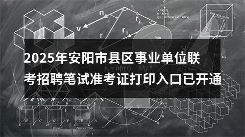 【2025年安阳市县区事业单位联考招聘笔试准考证打印入口已开通】相关岗位: