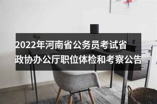 根据《河南省2022年统一考试录用公务员公告》规定,现将报考省政协办公厅职位体检和考察工作有关事项公告如下: