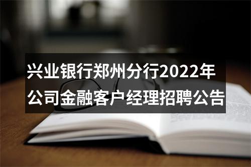 原标题:兴业银行郑州分行2022年公司金融客户经理招聘公告