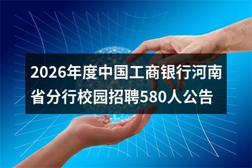 【2026年度中国工商银行河南省分行校园招聘580人公告】相关岗位: