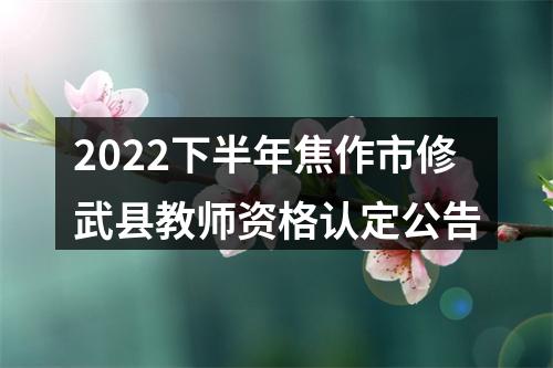 根据《中华人民共和国教师法》《教师资格条例》《〈教师资格条例〉实施办法》《教育部关于推进师范生免试认定中小学教师资格改革的通知》等有关规定,按照教育部、省、市工作安排及我县实际情况,现就修武县 2022 年下半年中小学教师资格认定工作有关事项公告如下: